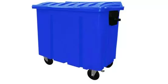 Container de lixo 500L com rodas, em PEAD/PP, com munhões e tampa. Atende normas sanitárias e UNE EN 840. Ideal para coleta seletiva, urbana e industrial…