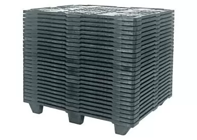 Fabricado em polipropileno (PP) reciclado ou virgem, o pallet possui 4 entradas livres, permitindo operação com empilhadeiras ou paleteiras por qualquer lado. Não requer manutenção, é lavável, imune a insetos, bactérias, fungos e resistente a agentes químicos. Além disso, é 100 % reciclável e pode ser produzido com matéria virgem específica para câmaras frias (resistindo até –40 °C). Os concorrentes europeus, como a Q‑Pall, oferecem pallets encaixávelis 1200×1000 mm com peso de 6,8–8,9 kg, mas racking load 0 kg.; o Eko 100×120 encaixável iguala a leveza, porém entrega capacidade dinâmica superior (1 200 kg) e design otimizado para o padrão PBR.