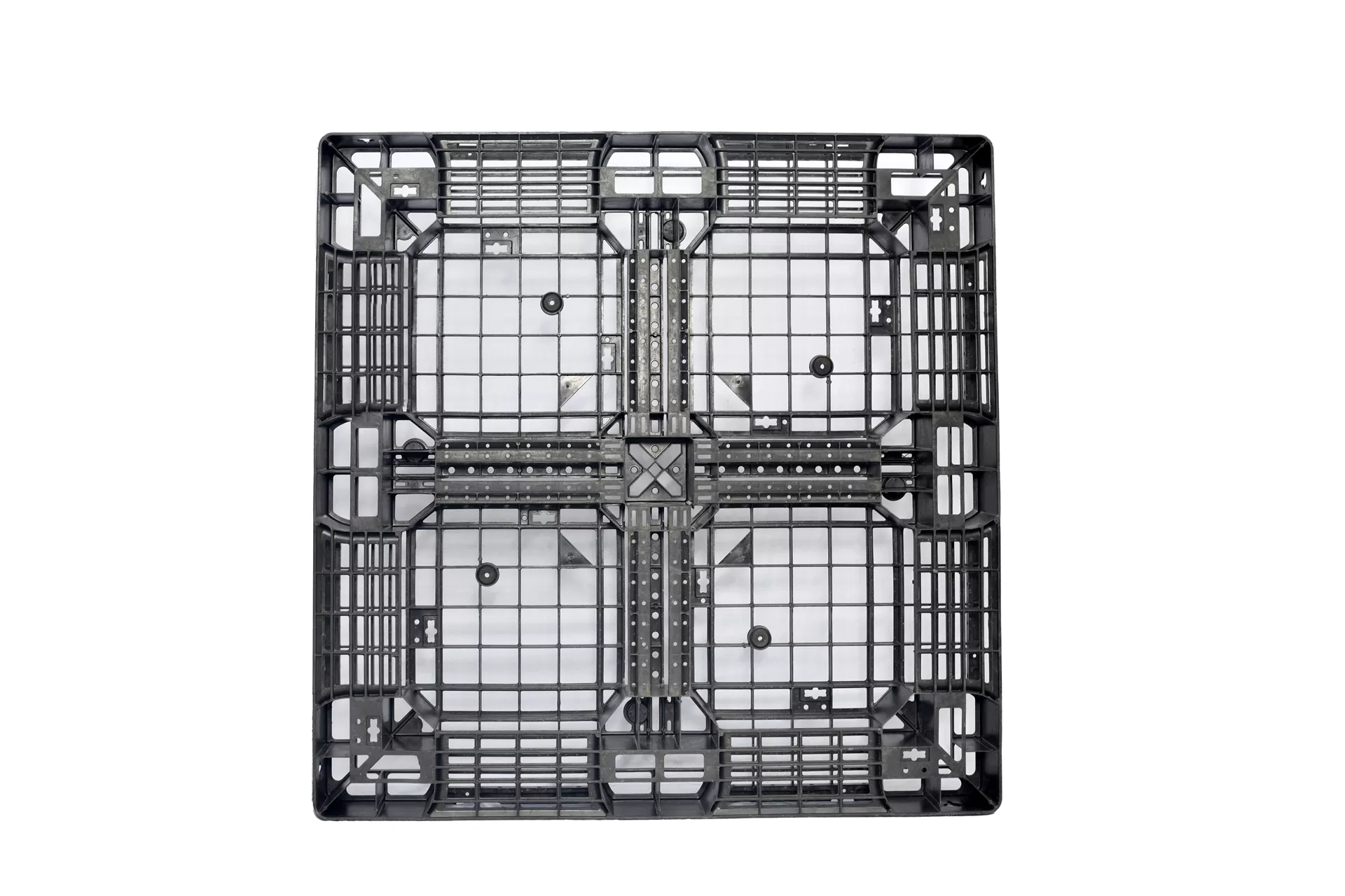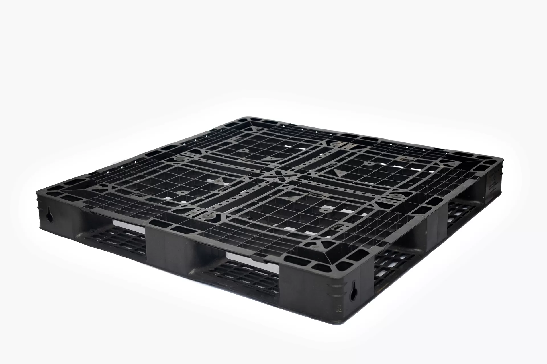 Pallet plástico 110×110×12 para Big BagsPallet plástico 110×110×12 para Big Bags e exportações. Capacidade 2 500 kg estático, 1 000 kg dinâmico e 600 kg em estantes. Pesa apenas 9 kg, é sustentável e atóxico.