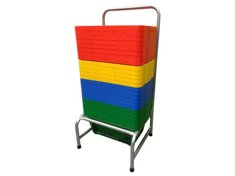 Os Suportes para Cesta de Supermercado da EkoPalete foram desenvolvidos para organizar de forma prática e segura as cestas plásticas na entrada de supermercados, mercearias, farmácias, hortifrutis e lojas em geral. Em vez de cestas espalhadas pelo chão ou empilhadas de forma improvisada, o suporte concentra até 30 cestas de supermercado em uma torre estável e de fácil acesso ao cliente.